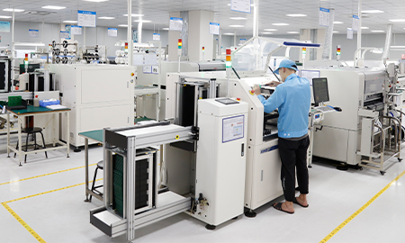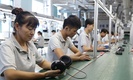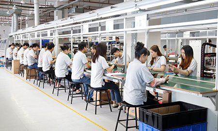 现有组装流水线2条现代化的生产线(可随时扩成4条),对太阳能控制器,逆变器,储能、工业降噪耳机、等工业产品组装经验丰富 ;能够生产绝大部分的数码电子产品,极强的综合生产能力,日产能达到1万PCS以上。防静电PVC空调车间,配备有老化房,测试房,成品测试隔音隔离房等,设备先进、完善,可进行各种产品镭雕、组装、老化、测试、包装等生产。